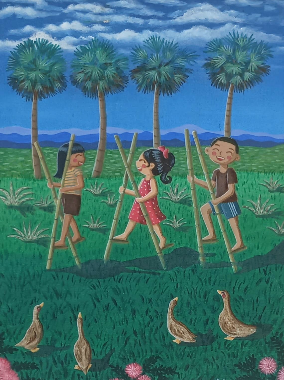 Kegembiraan anak-anak dengan permainan sederhana.