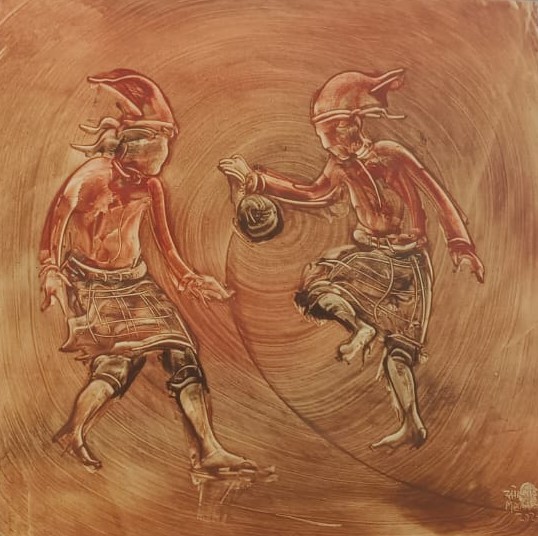 Media: Tanah liat di atas kanvas